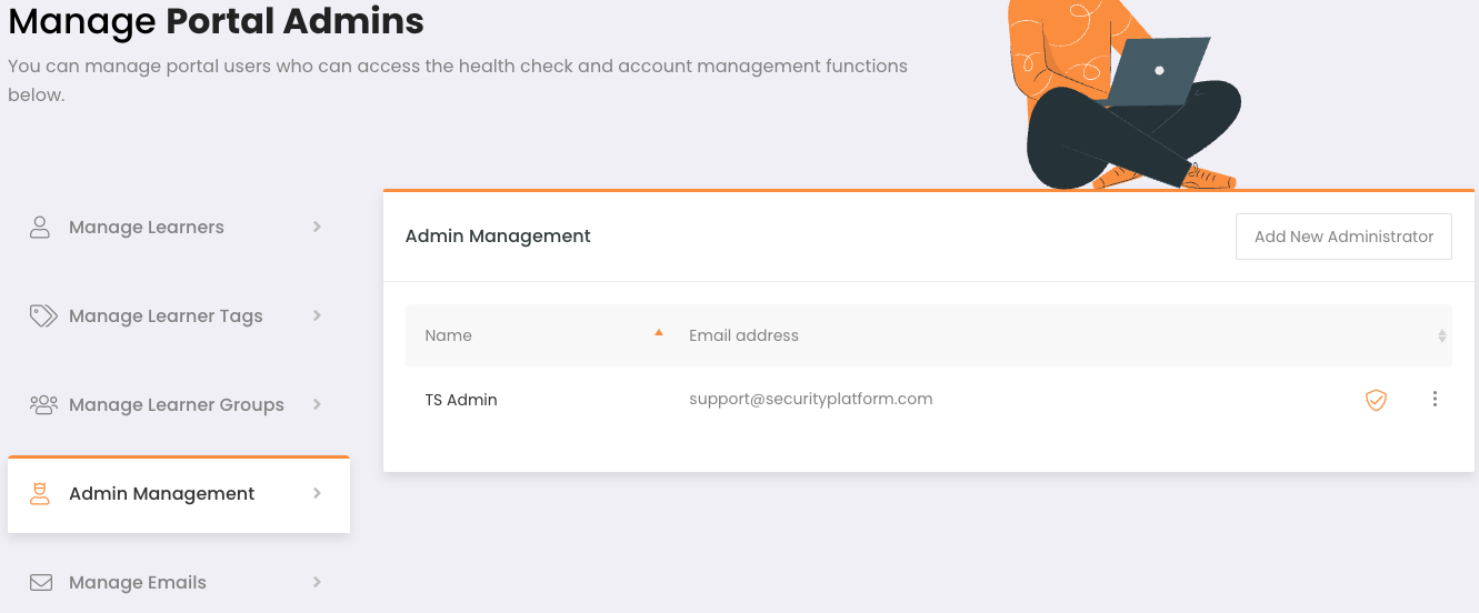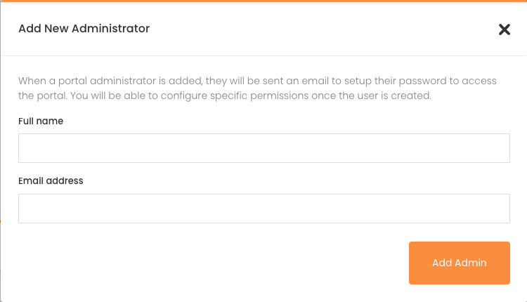 From here you can send password reset links as well as remove administrators and adjust permissions. You can also add new administrators by clicking Add New Administrator and filling in the new admin's details